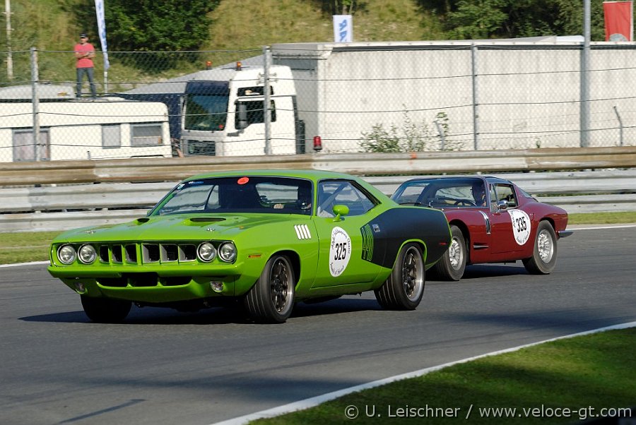 Image 61 of 77 2008-08-30_2076 T. Putz auf Plymouth Barracuda 1971, G. Weißenböck auf Bizzarini 1900 GT Europa ADAC Salzburgring Classic 2008 Bild bestellen |